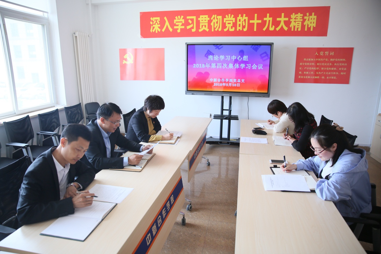 5月10日下午,中新合作学院在党员活动室召开2018年第四次党总支理论学习中心组学习会。学院党总支理论学习中心组成员、党支部书记参加会议,会议由党总支副书记邓艺主持。