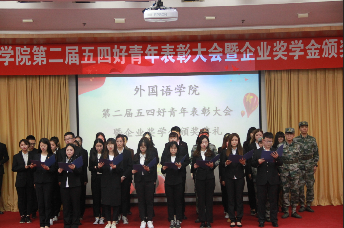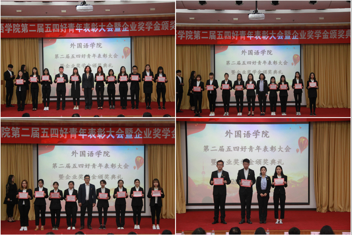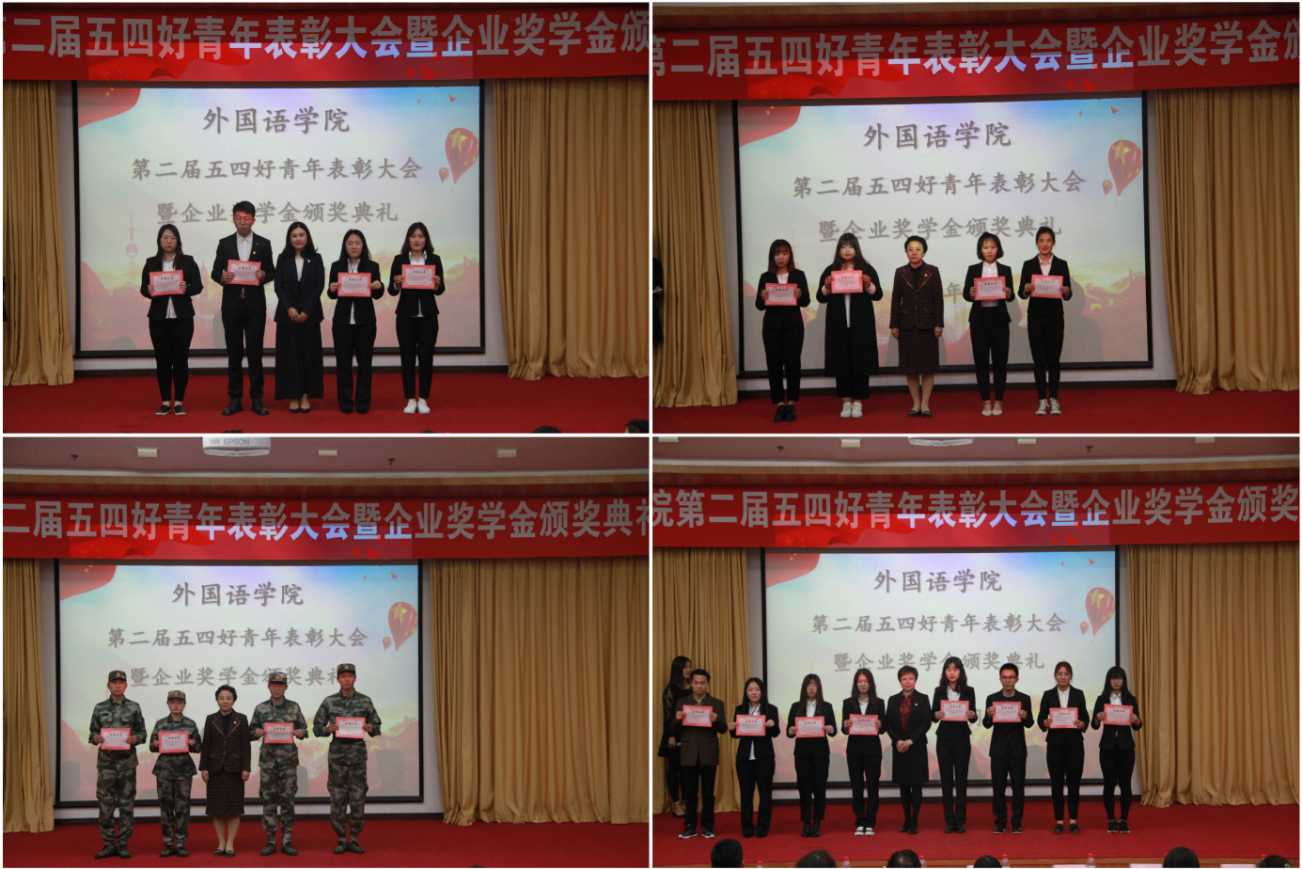 范秀敏宣读了表彰名单。在典礼上,表彰了外国语学院“五四好青年”之最美共产党员、最美共青团员、最美班干部、最美学生会干部、最美学生教官、最美寝室及最美寝室长、最美团支部以及最美榜样人物共8个奖项,获奖学生43名,发放企业奖学金6650元。