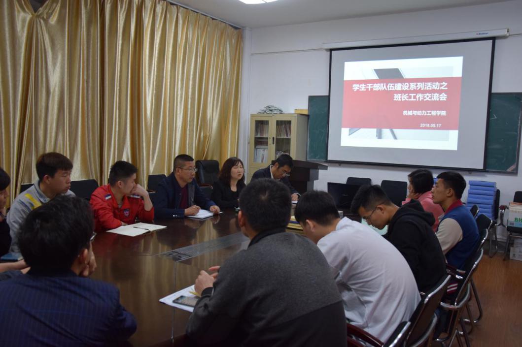 为更好地了解学院学生思想动态,学习生活需求,加强学生干部队伍建设,机械与动力工程学院于5月17日在学院会议室召开师生座谈会暨班长工作交流指导会。会议由机械与动力工程学院副院长刘洪伟主持,机械与动力工程学院副院长蔡卫国、专业老师代表及各班班长参加了会议。