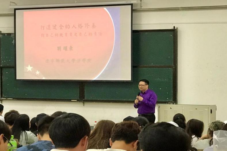 5月31日,我校第四十七期“蓝色讲坛”在渤海校区第一教学楼第一阶梯教室举行,辽宁师范大学法学院副教授刘耀东应邀作了题为“打造健全的人格修养——对自己的教育负起自己的责任”的讲座。经济管理学院相关负责人、后勤管理处有关人员及经济管理学院全体2017级学生聆听讲座。