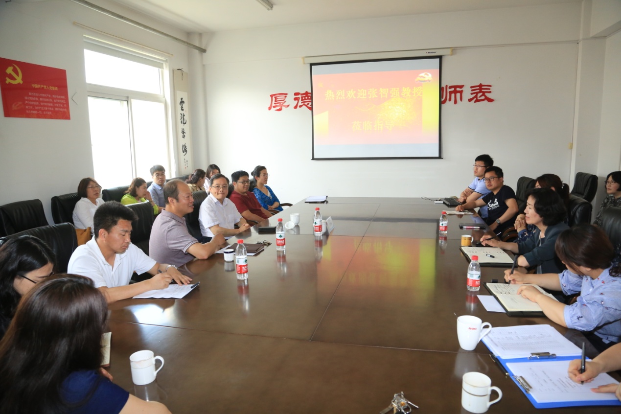 座谈中,张智强介绍了上海中医药大学开展“课程思政”的成功经验,分析了将理想信念、社会主义核心价值观和弘扬中华优秀传统文化教育融入专业教学的可行性和有效性。在提升思想政治理论课教学效果方面,他认为,思想政治理论课不能当作纯理论课来讲授,教师应该把热点问题融入教学中,要把理论和现实结合好,注重问题导向,开展讨论式教学,增强思想政治理论课的生动性和学生的获得感。随后,学院教师围绕增强思想政治理论课教学的亲和力等问题进行了深入交流和探讨。