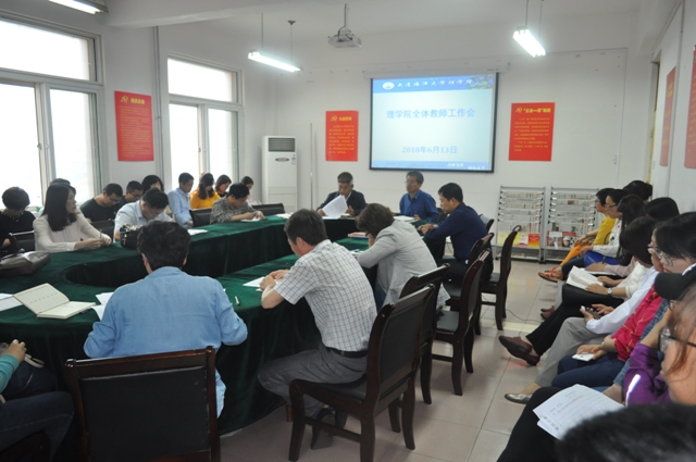 6月13日,理学院在学院会议室召开教职工会议,全体党员及教职员工共同学习了“习近平在中国科学院第十九次院士大会、中国工程院第十四次院士大会上的讲话”精神,学习活动由学院党总支书记于振作主持。