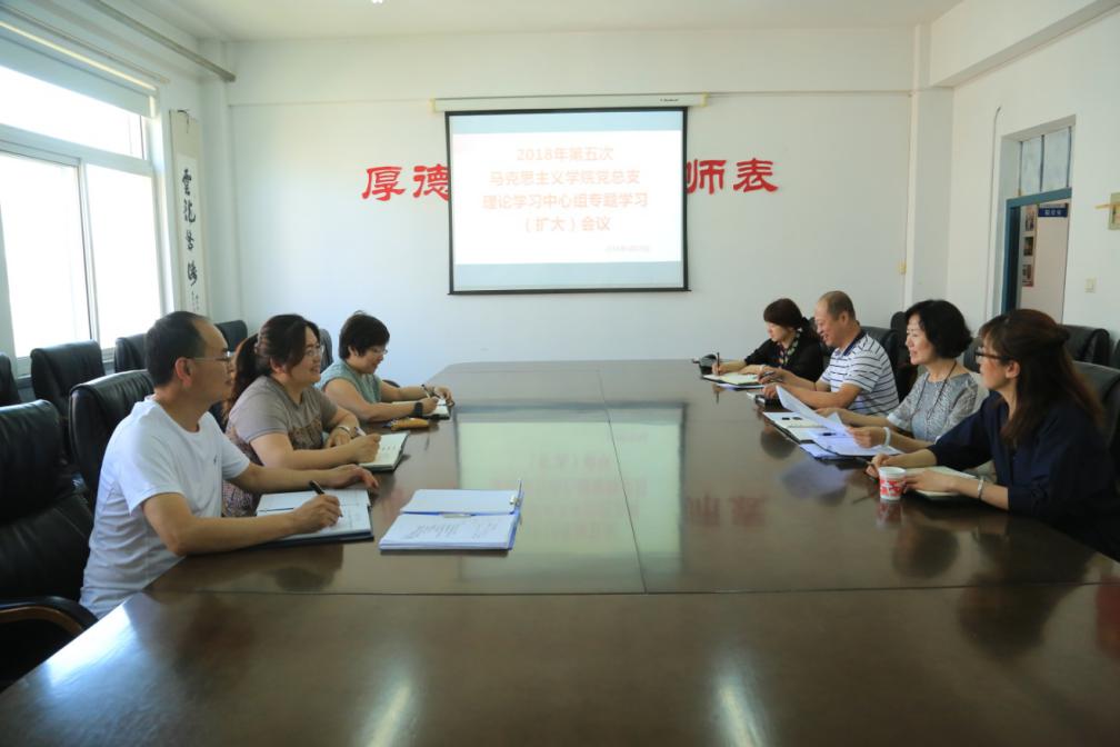 6月29日上午,马克思主义学院在会议室召开2018年第五次党总支理论学习中心组学习(扩大)会议。学院理论中心组成员及党支部书记参加会议。会议由党总支书记王丹主持。