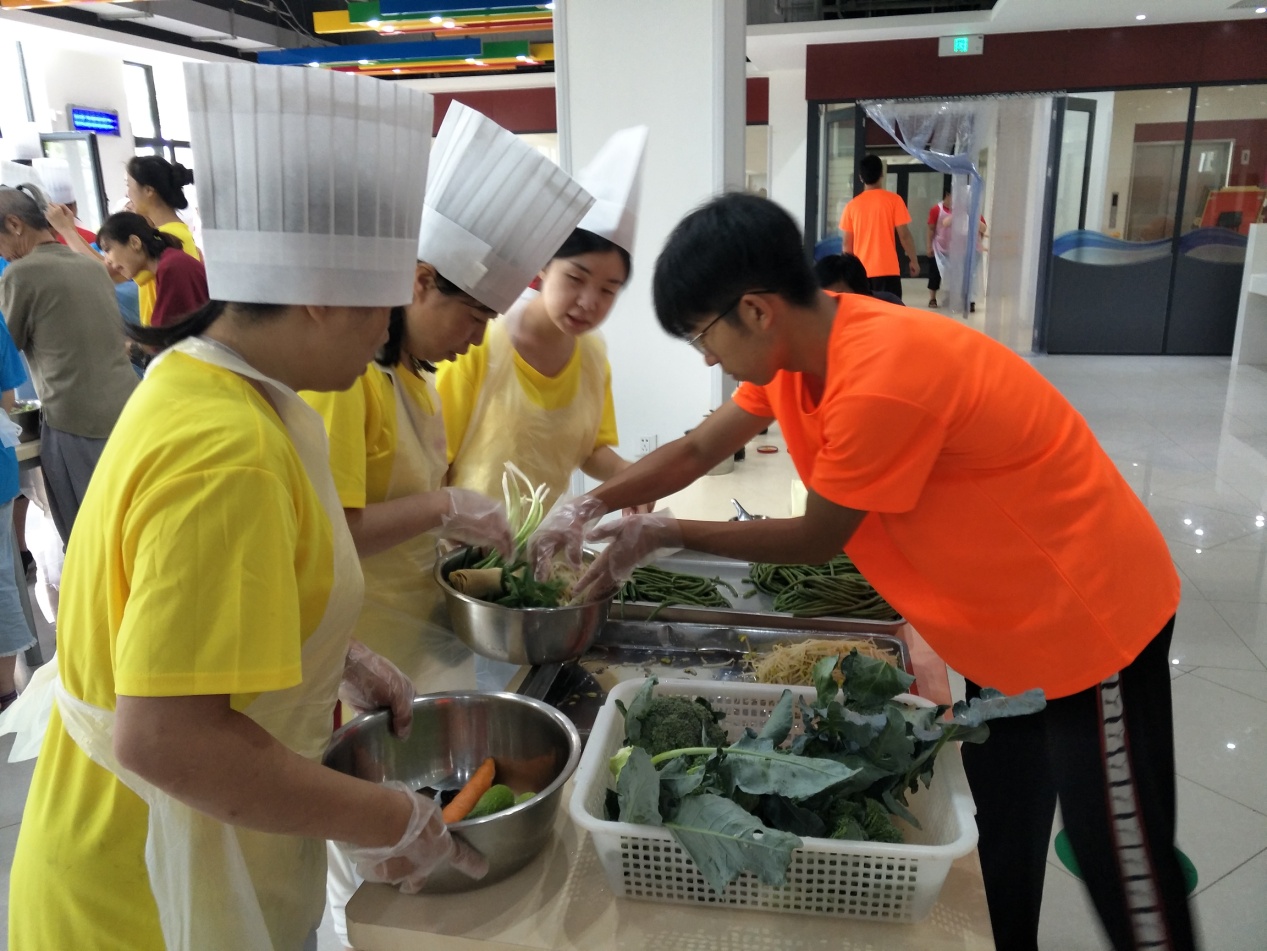 本次夏令营共持续三天,志愿者需要陪伴协助智力残疾人顺利完成夏令营的活动。孩子们或语言沟通存在障碍或举止略显怪异,志愿者们没有畏难,主动上前与他们聊天沟通,包容接纳他们的怪异,更深入地去了解认识,或以游戏的方式逐渐打开孩子们封闭的内心,彼此的距离也慢慢拉近。消防逃生演练中,由于身体协调性的缺乏,孩子们的表现难免不尽人意。志愿者们仔细观察,耐心辅助,想方设法地帮助孩子们克服困难;学农专场中,在志愿者的带领下,孩子们动手学习无土栽培。在他们专注的眼神中,透露着并未泯灭的学习欲望,体验着自主栽培带来的成就感;表演时间,孩子们在舞台尽情演绎,吹弹奏唱,精彩纷呈。舞台上才华横溢的他们惊艳了全场,赢得了大家一致的掌声;充满创意的午餐时间,每个家庭自己动手制作佳肴,志愿者们积极分发食材。大家戴上厨师帽,变身美味大厨。很多低年级的孩子很认真地帮助父母做着洗菜、拌菜、剥蒜等简单工作,成为了夏令营中家庭亲情中最温情的写照。志愿者们忙碌的身影成了最美的风景线。