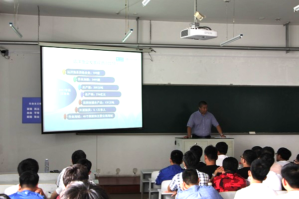 近日,中国水产有限公司副总经理杨光辉一行来访我校开展校企合作交流,副校长胡玉才会见了杨光辉一行,并就校企合作事宜进行了交流,教务处、科技处、海洋科技与环境学院相关负责人参加交流会。交流会后,杨光辉等应邀在我校獐子岛教学楼104教室围绕远洋渔业的主题作了相关报告,我校师生代表近100余人聆听了报告。报告拓宽了我校海洋渔业科学与技术专业学生的专业知识,促进了我校学生对远洋渔业的了解。报告后,杨光辉与有意从事远洋渔业事业的同学进行了亲切交谈,并签订了相关就业协定。海洋科技与环境学院 供稿
