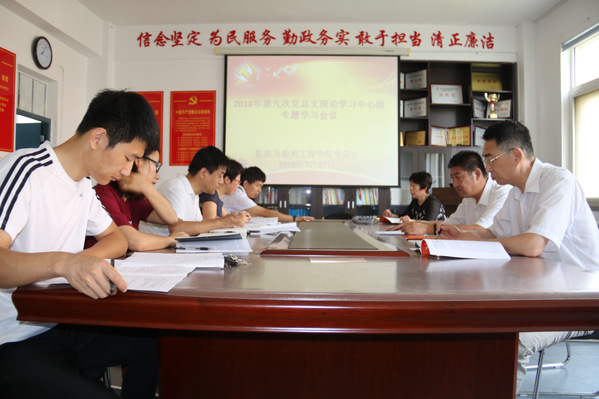 会议学习了中国共产党章程(总纲部分)、党的十九大报告(节选)和《人民日报:在新时代书写不忘初心牢记使命新篇章》。