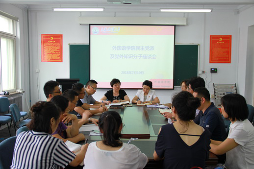 7月19日下午,外国语学院在党员活动室召开民主党派及党外知识分子座谈会,学院领导班子成员、各党支部书记、民主党派成员及党外知识分子出席会议,会议由总支书记范秀敏主持。