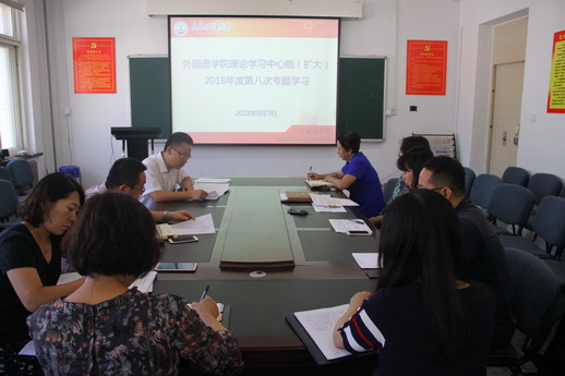 9月7日中午,外国语学院党总支2018年第八次党总支理论学习中心组(扩大)学习会在学院党员活动室召开。学院党总支理论学习中心组成员、各党支部书记参加学习。会议由学院党总支副书记武家春主持。