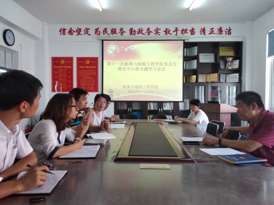 9月11日,航海与船舶工程学院党总支在学院会议室召开2018年第十一次党总支理论学习中心组学习会。学院党总支理论学习中心组成员参加会议。会议由李俊柱主持。