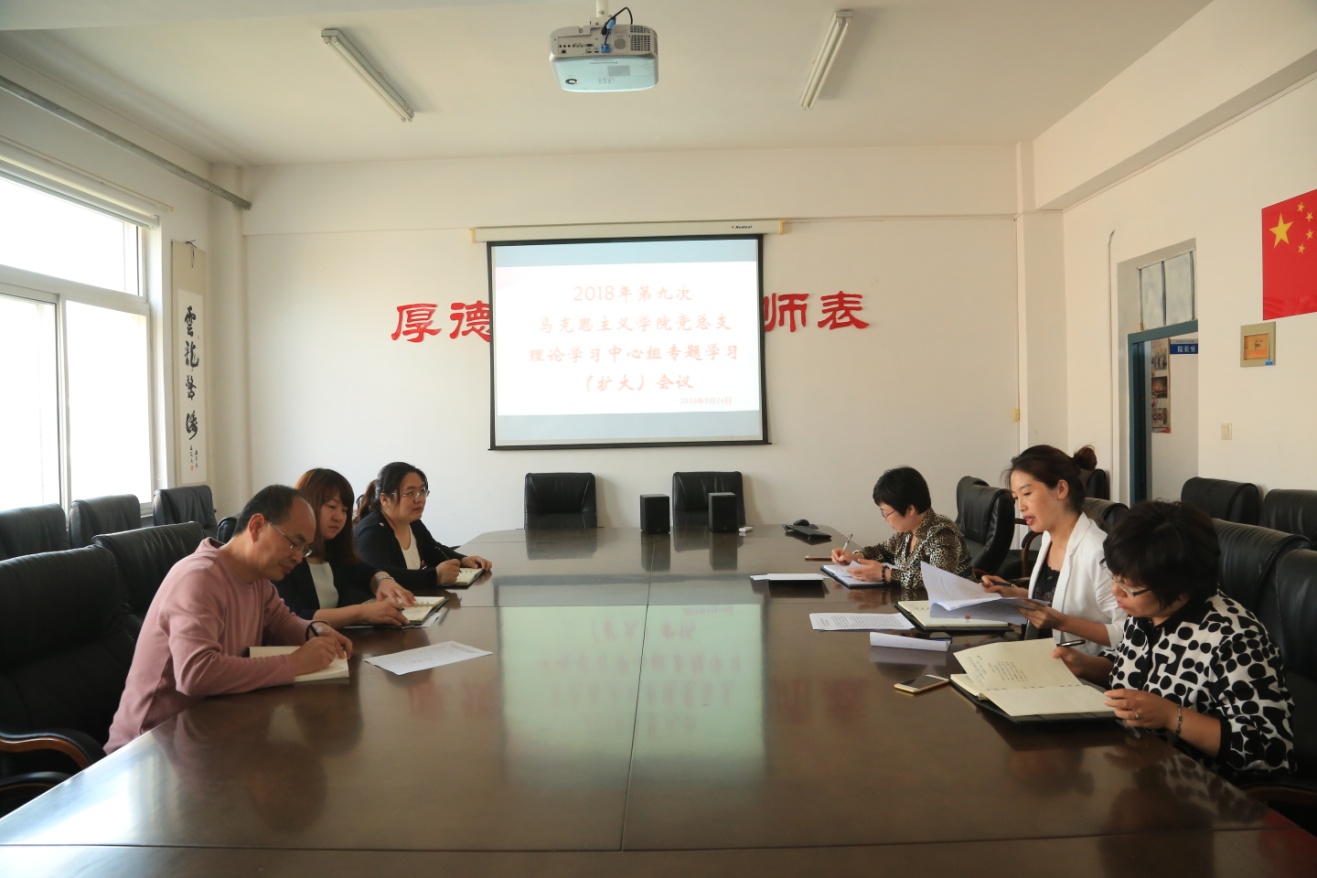 9月26日,马克思主义学院党总支在会议室召开2018年第九次理论学习中心组(扩大)专题学习会议。学院中心组成员、支部书记、办公室主任及组织员参加了会议。会议由学院党总支委员、副院长郭双主持。