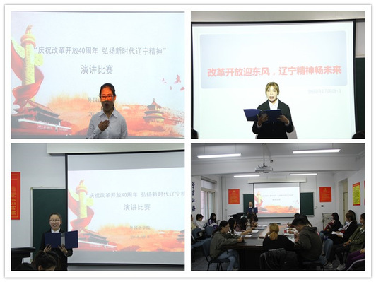 10月8日下午,外国语学院在黄海校区第一教学楼206教室举办“庆祝改革开放40周年弘扬新时代辽宁精神”主题演讲比赛。外国语学院第九届学生会主席团担任评委,团委副书记时小清主持比赛。