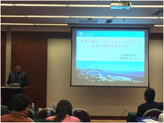 我校作为省内普通高校代表受邀作大会工作汇报。基于我校在电子技术课程建设及体系改革方面所取得的成就,我校信息工程学院教师李响作了题为《开放与融合,构筑多层次、立体化的电子工程实践教学体系》的工作与成果汇报。报告深入浅出、内容详实、成果突出,赢得了与会领导、专家的高度肯定和赞扬。通过汇报及交流讨论,使我校参会教师更加全面地了解了全国在线开放课程建设与应用情况,为我校相关课程的建设和研究提供了新的思路与借鉴。