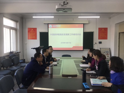 10月17日下午,外国语学院党总支于学院会议室召开党务工作者培训会议,学院各党支部书记、委员以及组织员参加会议,会议由学院党总支副书记武家春主持。培训会上,武家春带领与会人员就“三会一课”制度、基层组织生活、党费工作、组织生活制度、党支部规范化建设、党员发展等党建工作校级和院级规章制度进行了集中学习,并对下一阶段党支部规范化建设和党员发展工作进行了布置。此次培训会提升了学院党务工作者的综合素质和业务水平,有助于进一步加强党支部建设,不断提升基层党建工作水平。 外国语学院 供稿