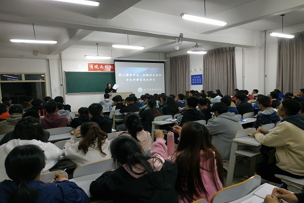 为增进2018级新生对第二课堂、创新创业实践学分认定的了解,加强学生综合素质教育,培养高素质多元化应用型人才,水产与生命学院于10月22日晚自习期间,召开了以学习和宣传第二课堂学分、创新创业学分认定及学生手册为主题的年级大会。辅导员孟丽婷和2018级全体学生参与大会。