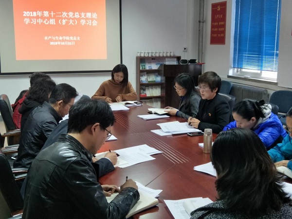 10月31日下午,水产与生命学院党总支在学院党员活动室召开2018年第十二次党总支理论学习中心组(扩大)专题学习会议。学院党总支理论学习中心组成员、各党支部书记参加会议。学院党总支书记邱金英主持会议。
