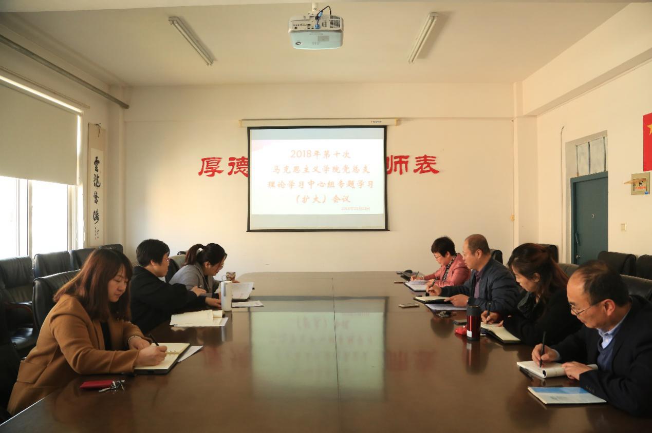 10月31日,马克思主义学院党总支在党员活动室召开了2018年第十次理论学习中心组(扩大)专题学习会议。学院中心组成员、支部书记、办公室主任及组织员参加了会议。会议由学院院长兼党总支书记王太海主持。
