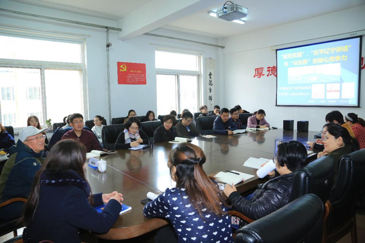 11月8日下午,马克思主义学院邀请中国延安干部学院李世明教授在会议室为学院师生上了题为《‘延安实践’‘习近平讲话’与‘马克思’的核心竞争力》的党课。