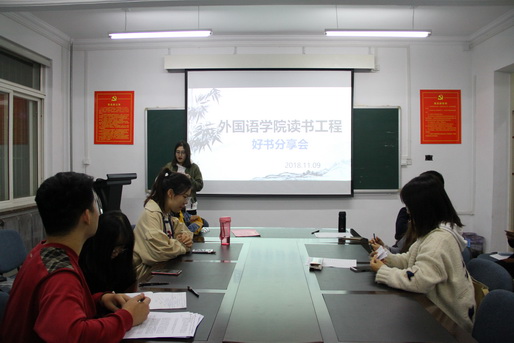 11月9日下午,外国语学院于一教206教室召开了读书工程——好书分享会。外国语学院团委书记王庆丰、学生会主席团成员以及各班学生代表参加分享活动。