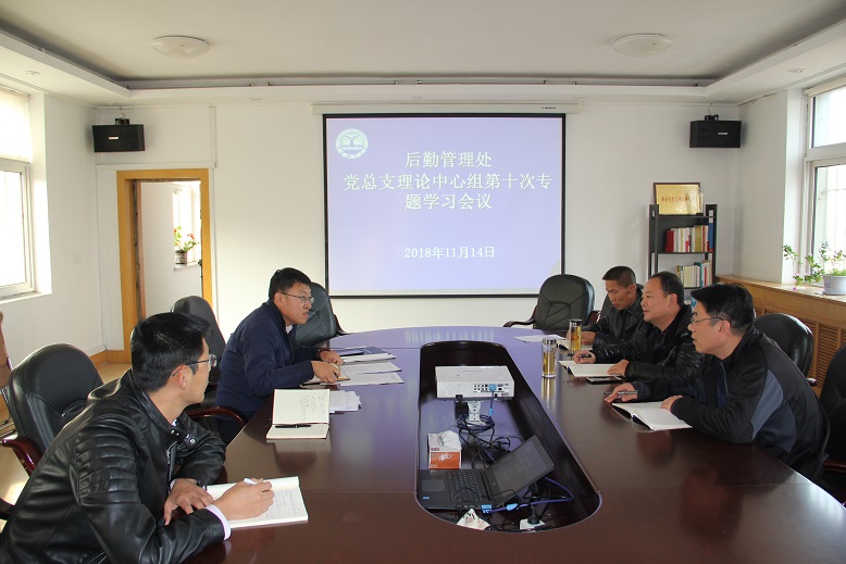 11月14日上午,后勤管理处在党员活动室召开2018年第十次理论学习中心组专题学习会议,党总支书记班振威主持本次学习活动。