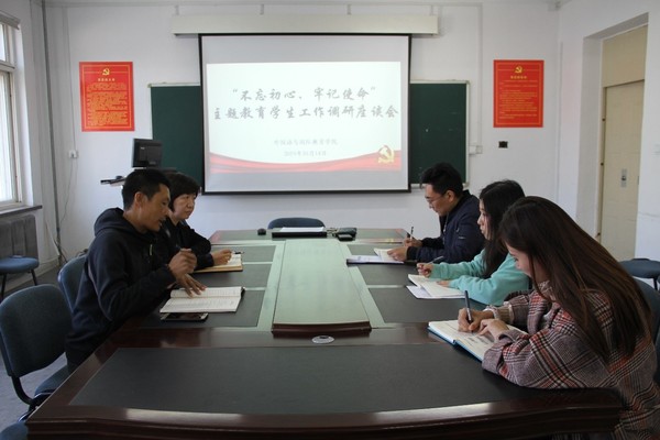 10月14日,外国语与国际教育学院在党员活动室召开了“不忘初心、牢记使命”主题教育学生工作调研座谈会。学院党总支书记邓艺、副书记孙祥山、团委书记周宇颂、辅导员田源、孟美斯参会。会议由孙祥山主持。