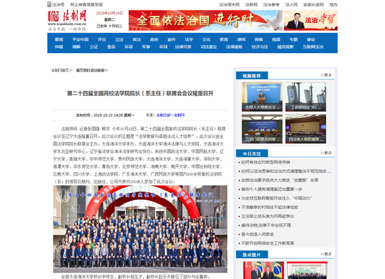 近日,民主法制网、法制网报道了10月19日我校成功举办的第二十四届全国高校法学院院长(系主任)联席会议的相关新闻。