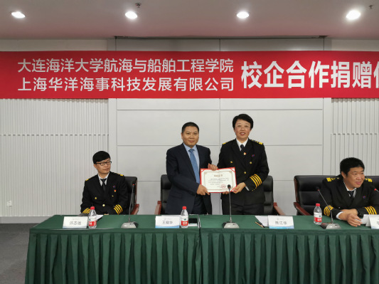 10月24日,航海与船舶工程学院与上海华洋海事科技发展有限公司捐赠仪式在图书馆多功能厅举行。上海华洋海事科技发展有限公司常务副总经理王晓华、肖国庆、周伟;航海与船舶工程学院院长隋江华、副院长许志远、党总支副书记王海鹏及相关师生代表出席本次仪式。仪式由党总支书记李俊柱主持。