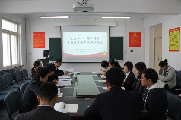 10月28日,外国语与国际教育学院党总支在学院党员活动室召开“不忘初心、牢记使命”主题教育调研成果交流会。学校主题教育第二巡回指导组成员出席并督导会议,学院党总支委员、支部委员、组织员、学生代表参会,会议由党总支书记邓艺主持。