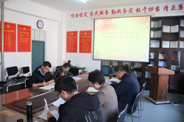 11月1日,航海与船舶工程学院党总支在学院党员活动室召开“不忘初心、牢记使命”主题教育理论学习中心组会议。会议由学院党总支书记李俊柱主持,学院党总支委员参加会议。