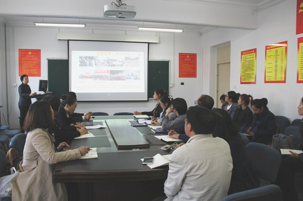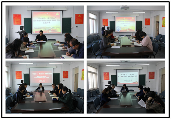 院长郭艳玲以“‘守初心,担使命’,争做合格党员领导干部”为题,为学院教师党员、学生代表讲授专题党课,校主题教育第二巡回指导组成员丁立华同志到会指导。郭艳玲从“铭初心、担使命-知党史”“守初心、担使命、找差距、抓落实”“‘守初心,担使命’,争做合格党员领导干部”等三个方面同与会人员分享了她对共产党人初心和使命的认识。