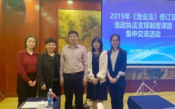 近日,2019年《渔业法》修订及渔政执法支撑制度研究课题集中交流活动在福州举行。农业农村部渔业渔政管理局郭云峰处长、福建省海洋与渔业局朱红处长出席本次活动并致辞,各高校、科研课题承担单位参加本次交流活动。我校海洋法律与人文学院院长裴兆斌教授、副院长朱晖副教授、法律硕士研究生王悦代表课题组进行课题研究工作进展汇报。