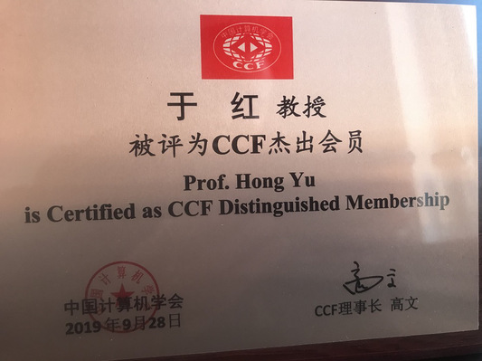 近日,中国计算机学会(CCF)向我校发来祝贺信,祝贺我校信息工程学院院长于红教授在2019年度会员级别评审中当选中国计算机学会(CCF)杰出会员(Distinguished Membership)。