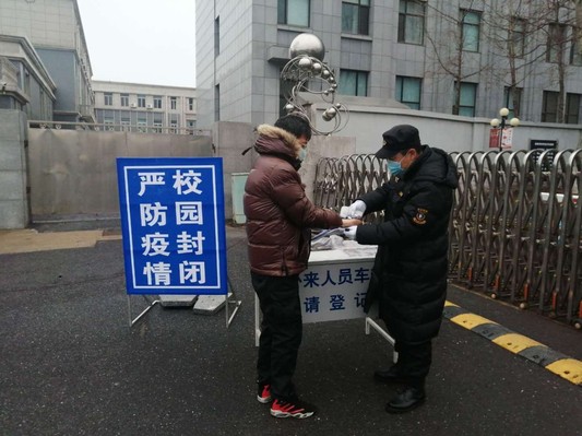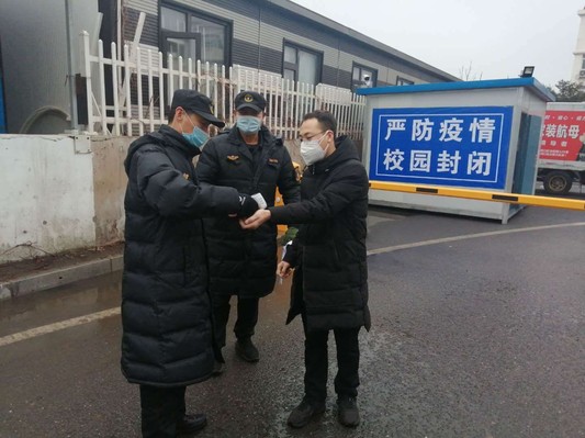 在抗击疫情的特殊时期,保卫处加强值班力量,学校所有校区校门值守人员严把校园防范第一关,冒着严寒,昼夜坚守岗位。严格加强入校人员身份甄别、有礼有节劝离无关人员,严禁无关外来人员和车辆进入校园。对校内人员入校时进行严格身份查验、体温检测、信息登记,要求必须佩戴口罩。