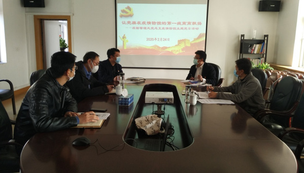 2月24日上午,党总支通过“学习强国”APP进行第一阶段“学习提高强意识”视频在线学习,向全体党员通报全国和辽宁省、大连市的最新疫情情况,集体学习2月3日《习近平总书记在中央政治局常委会会议研究应对新型冠状病毒肺炎疫情工作时的讲话》和学校相关的文件精神,通报学校和后勤管理处疫情防控工作部署情况,并就开展好主题党日活动和疫情防控期间的党员先锋作用提出具体要求。会议要求全体党员要有责任感,在做好自身防护的前提下坚守工作岗位,发挥先锋模范作用,带领后勤全体员工,积极投入到我校的战“疫”中。
