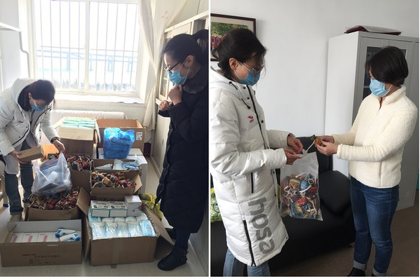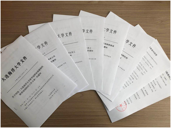 从1月27日开始,陆续给后勤管理处、保卫处、国际交流与合作处、渤海校区、瓦房店校区等部门累计发放口罩3429个、测温枪21把、84消毒液504斤、喷壶35把、手套230付、体温计、隔离服、护目镜等防控物资。并根据大连市卫生健康委提供的预防新冠肺炎处方,平价购进中药为全校教师制作防疫香囊,确保开学在岗人员第一时间发放。指导食堂配制茶饮方,用心守护师生健康。