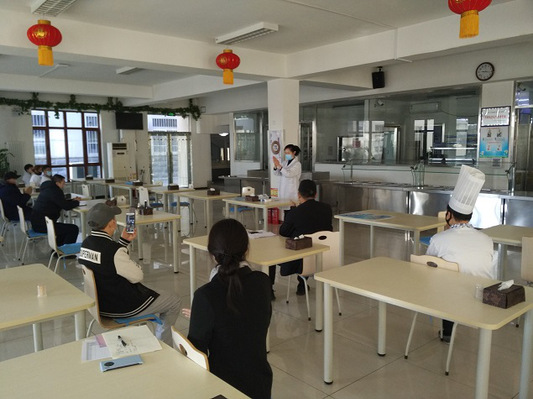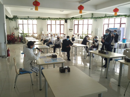 为增强师生防护意识和技能,卫生所医务人员在加强疫情防控知识学习的同时,先后为学校有师生报道接待任务的部门、后勤服务部门、安全保卫部门、各职能部门值班值守人员进行防控知识培训。培训现场医务人员演示七步洗手法、口罩正确佩戴方法、消毒液的用法、手持测温仪的调试使用等。为减少人员的聚集,录制防疫知识视频,发到相关部门微信群里,确保各部门服务人员做好自我保护。
