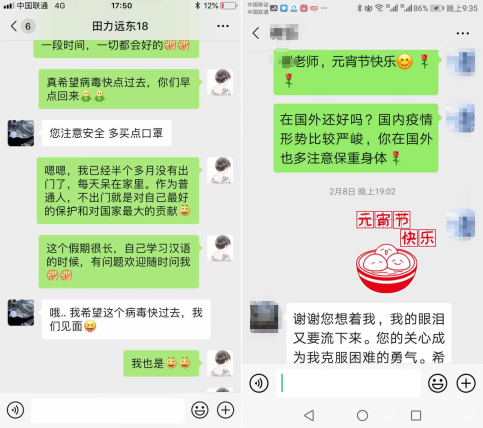 对外汉语教研室党支部密切关注海外教师和外籍学生情况,及时向他们通报国内疫情信息,转达学校要求,带去学校的温情和问候。