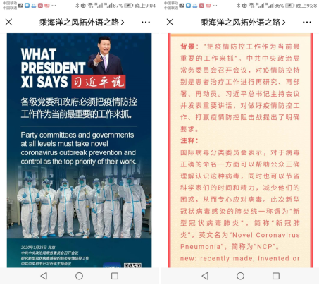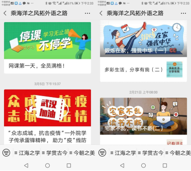 专业英语教研室党支部在学院微信公众号定期推送中英双语版《总书记说》,向广大青年学生传递习近平总书记关于做好疫情防控工作、打赢疫情防控阻击战的重要指示批示精神。