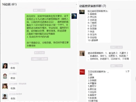为了做好本次线上答辩工作,保障线上答辩顺利开展,海洋法律与人文学院视觉传达设计教研室制订了符合本专业特点的《2020届本科毕业设计(论文)开题答辩工作安排》,指派专人认真做好开题答辩工作布置,提前建立QQ群、微信群,对开题答辩教师、学生开题答辩分组做出了具体布置安排,要求指导教师提前通过“毕业设计(论文)网上管理系统”下达任务书,审阅所带学生的开题报告,严格把关,确保答辩工作的圆满完成。