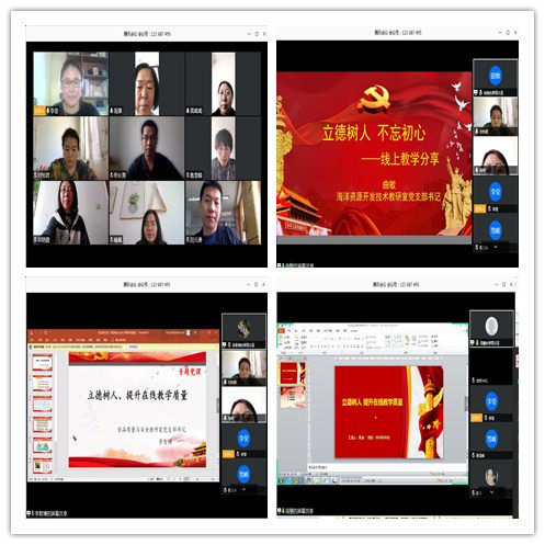 为促进学院教师交流在线教学经验,保障学院在线教学工作高质量进行,4月24日3位食品科学与工程学院教工党支部书记以“立德树人 提升在线教学质量”为题,分别讲授专题党课,学院全体教工党员及副教授以下党外教师参加,总支书记高璐璐主持会议。
