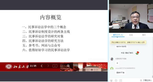 4月24日19:00-20:00,海洋法律与人文学院“云端”名师大讲堂第七讲开播。法学教研室会同法硕中心组织法学专业本科生和法律硕士研究生在线收看了中国大学MOOC开放的学术讲座 “三言两语话民诉:民诉法学学习入门纲要”,由北京大学法学院教授潘剑锋主讲。