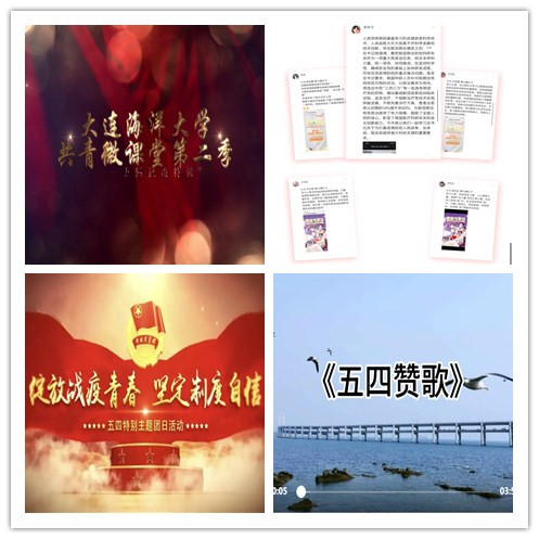 薪火相传,唱响青春之歌。校团委举办“用青春之声 唱五四之歌”团支部团歌合唱比赛、“用青春之声 诵五四之魂”团支部朗诵比赛,“青春之声 闪耀五四”经典影视配音大赛,增强广大青年爱国主义和集体意识,传递青年之声,展现青年力量;以“强青春体魄 扬五四精神”为主题展开体育健身活动,各学院代表队上传视频,评委通过网络评选的方式进行评比,激发学生健康锻炼的热情,培养朝气蓬勃的风貌;拍摄“薪火相承 五四接力”城市接力视频,广大青年学生在自己的家乡,大连、安徽、贵州、内蒙古等30多个省市接力奔跑,以青春活力,庆祝五四运动101周年,发扬先辈精神;开展“全民抗击疫情 展现青春风华”学院、社团“云”献礼线上才艺展示直播活动,培养发现优秀青年文艺人才,凝聚广大团员青年的智慧和力量。