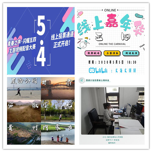 拥抱无悔青春,托起梦想之翼。自西部计划开展以来,我校数十名学生光荣投身西部建设,在砥砺自我中用青春与汗水为西部繁荣发展贡献力量。以“五四”为契机,开展“青年勇担当 志愿再行动”--西部计划志愿者感悟分享活动,邀请一批优秀的志愿者分享他们的青春故事,鼓励团员青年到西部去,到基层去,到祖国最需要的地方去,用一年的时间,做一件终身难忘的事;开展“抗击疫情 致敬青春”主题视频征集活动,激发我校青年学生强烈的社会责任感和使命感。