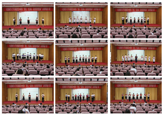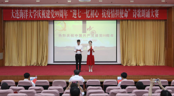 为庆祝建党99周年,礼赞抗疫英雄,不断巩固和拓展“不忘初心、牢记使命”主题教育成果,激发全校党员干部拼搏奋进、开拓创新,抒发“中华民族筑梦人”的深厚情怀,7月1日下午,我校“迎七一忆初心,抗疫情担使命”主题诗歌朗诵大赛在图书馆报告厅隆重举行。校党委书记姚杰、纪委书记王玉清、副校长赵乐天在主会场观看了比赛,各党总支(党委)委员、党支部书记、组织员、辅导员和其他党员通过在线直播的方式在分会场观看了比赛。
