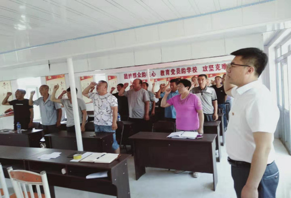 村党员大会朱维全带领党员重温入党誓词