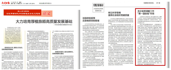 8月10日,海洋法律与人文学院院长裴兆斌、研究生相京佐的课题成果《充分发挥调解工作“第一道防线”作用》在《大连日报》“市社科联推荐栏目”中节选刊发。