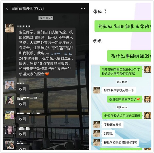 此外,她还负责黄海校区校内学生一日三餐的统计,并注意了解学生思想状态,在线上安慰鼓励学生,解决学生困难,事无巨细,竭尽全力。