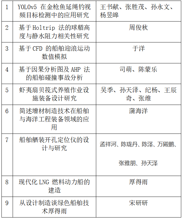 经造船学会学术工作委员会形式审查、专家评审,选出33 篇优秀论文,航海与船舶工程学院研究生的9篇论文获评为优秀论文。