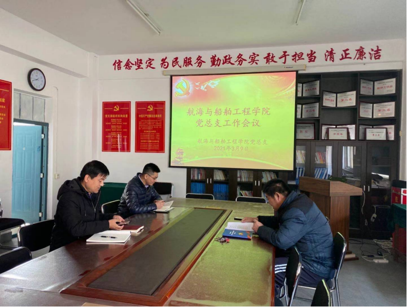 3月9日,航海与船舶工程学院党总支理论学习中心组召开专题学习会议,集体学习和讨论了习近平在党史学习教育动员大会上的重要讲话精神,教育部党组书记、部长陈宝生在2021年全国教育工作会议上的讲话以及教育部等六部门下发的《关于加强新时代高校教师队伍建设改革的指导意见》。会议由学院党总支书记李俊柱主持,学院理论学习中心组成员参加会议。