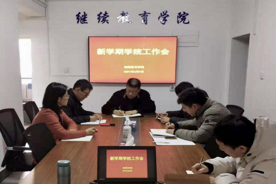 3月9日上午,继续教育学院在渤海校区学院会议室召开新学期工作会议,会议由院长纪元东主持,全体教职工参加了会议。