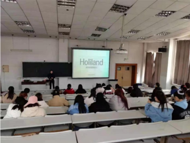 会上,好利来人事招聘负责人着重介绍了好利来的企业文化以及员工的发展前景,她分享了公司中优秀人才的事例并结合自身经历向学生展示加入企业后的生活。最后,她对招聘岗位、岗位待遇等方面做出详细介绍。同学们也表现出了踊跃的求职意向。